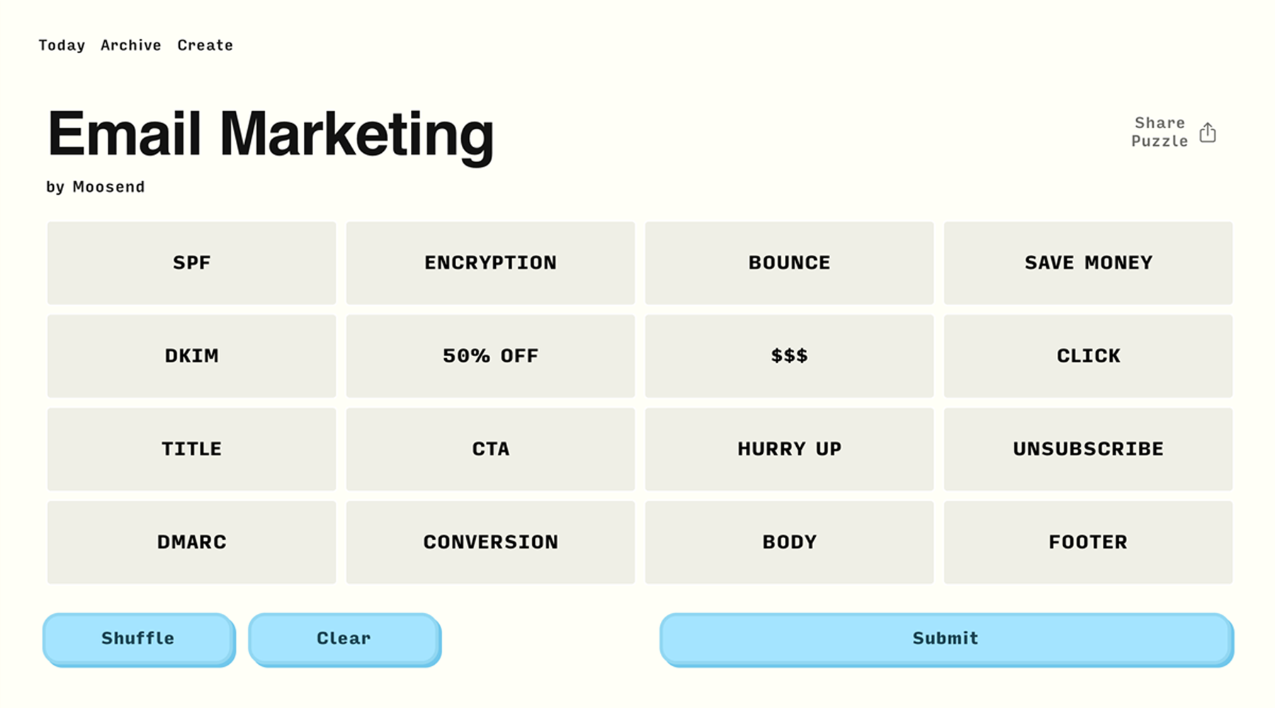 We created the email marketing version of the famous "Connections" puzzle.